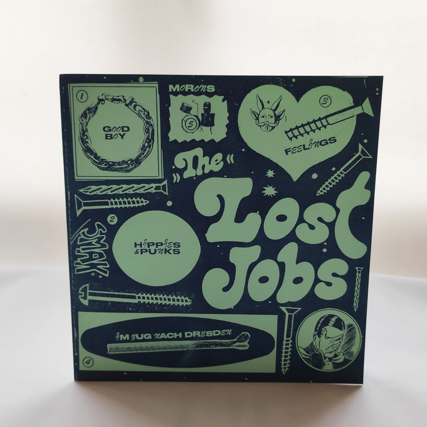 HE LOST JOBS kommen aus Leipzig und haben vor knapp 3 Jahren ein Split-Demo-Tape mit STREIT veröffentlicht. Seither hat die Band recht viel live gespielt, einige neue Songs geschrieben und jetzt kommt endlich das Vinyl-Debüt in Form einer schönen 7″. Darauf gibts 5x schnökellosen Garage-Punk mit rockenden Surf-Gitarren und dreckigem 77er-Einschlag. Die Platte ist limitiert auf 500 handnummerierte Exemplare und kommt inkl. Textblatt, DIY Stempel-Cover und Sticker.
